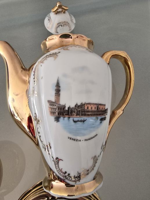 Prodajem Bavaria servis za malu kavu, motiv Venecija. Sastoji se od 6 šalica, 6 tanjurića, mali vrčić ta mlijeko, veliki vrč sa poklopcem, šećernica sa poklopcem. Nekorišten, stajao za ukras.