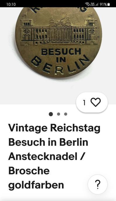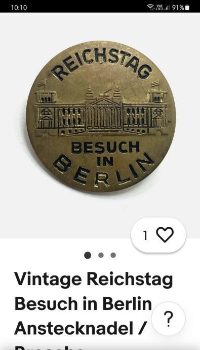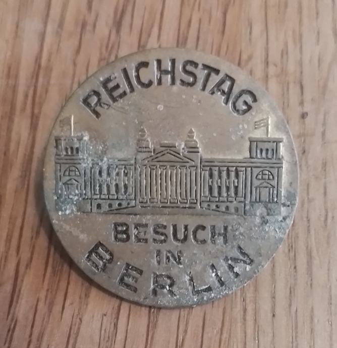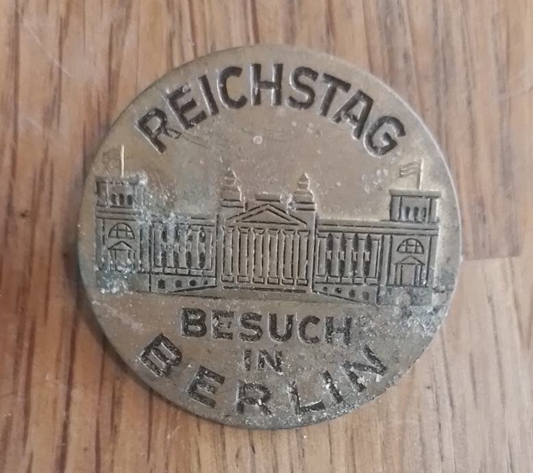 BEDŽ "REICHSTAG"-BESUCH IN BERLIN-promjera 3cm,pronađeno nečišćeno stanje-kolekcionarstvo-slanje nakon uplate predmeta na račun