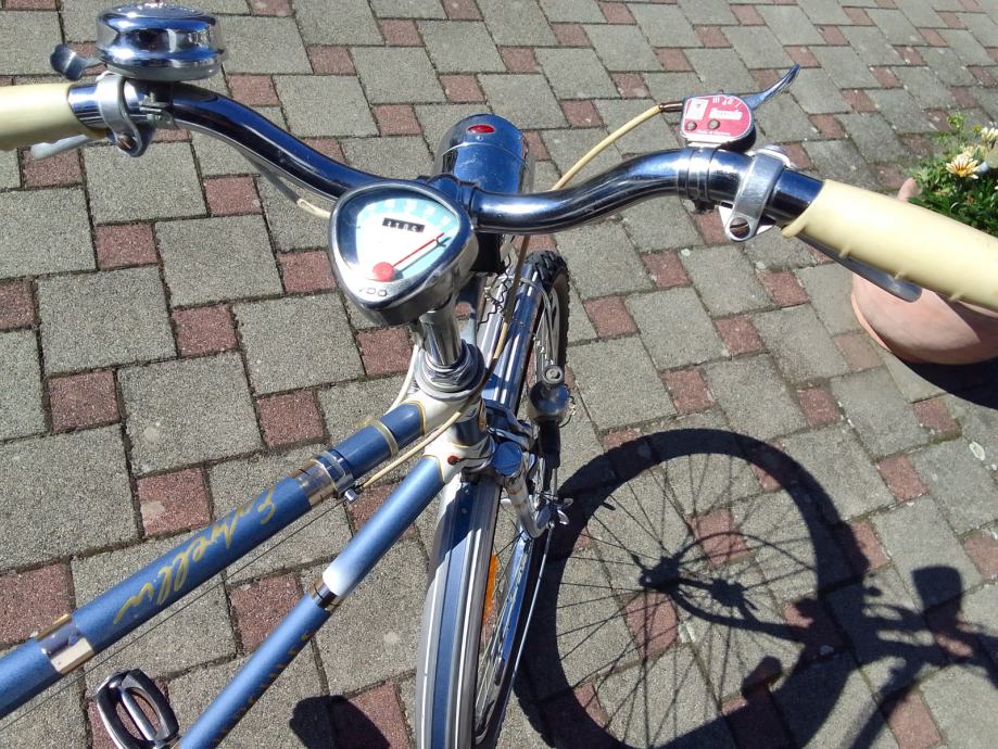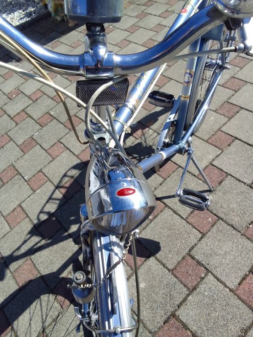 Prekrasan i sačuvan,kao novi,datira negdje od 50-60 godina prošlog stoljeća,ima originalni stari brzinomjer,brzine se mijenjaju na palac na desnoj strani upravljača,pogledajte slike i nazovite,navedena cijena je uvid u zamjene ako mijenjamo za starine i antikvitete