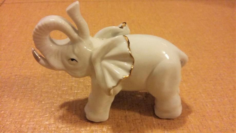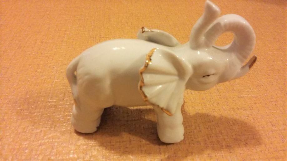 BIJELI SLON SA KLJOVAMA I RUBOM UŠIJU BOJE ZLATA