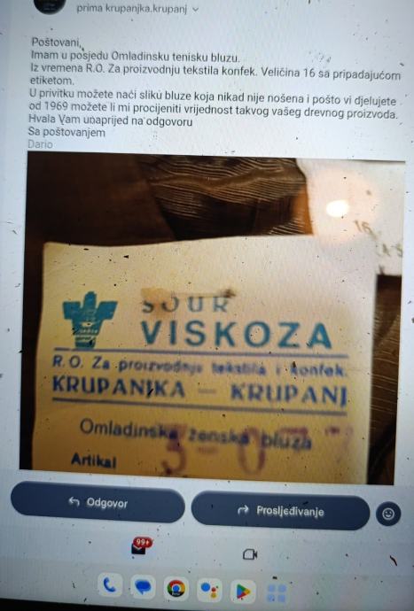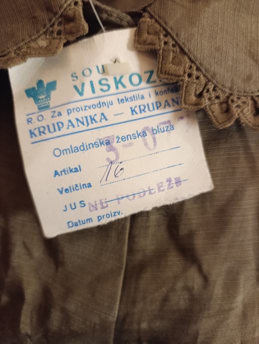 U izvrsnom stanju - proizvod iz kolekcije 1990 - pogledajte slike bluze i moje komunikacije sa sadašnjom firmom koja se više od 2006 kad je otišla u stečaj ne proizvodi tkaninu nego iznajmljuju prostor krajnjem korisniku. U potpunosti sačuvanom stanju. Nisam primijetio da je netko prodaje na njuškalu ali nova ne nošena bluza stara 30 godina. Sakupljači slobodno se javite, znat ćete cijeniti ovaj modni dragulj +38592449 2167