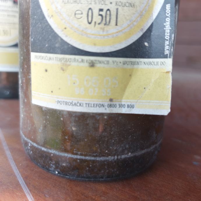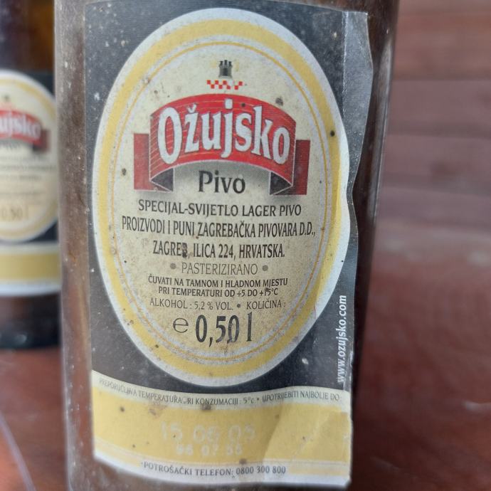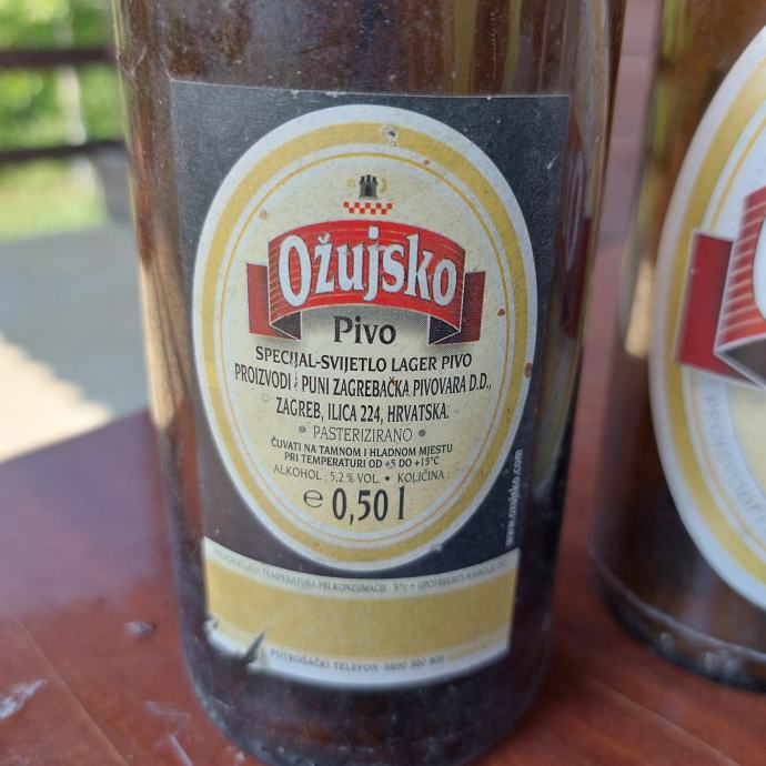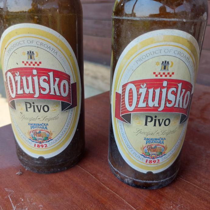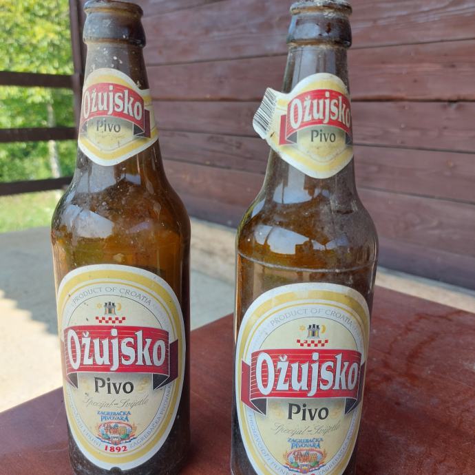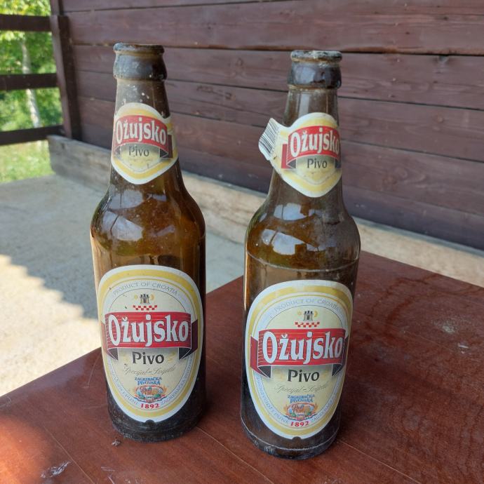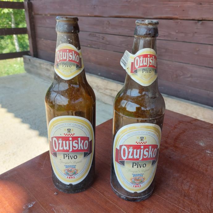 Prodajem dvije boce Ožujskog piva stare 20 godina (vidljivo na etiketi jedne boce).