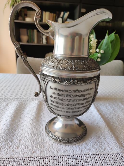 Prekrasan bokal za vino. Bogato izgraviran slikama i stihovima vezanih uz vino. Rađen u Njemačkoj sredinom dvadesetog stoljeća.