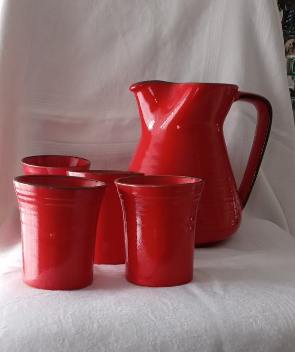 Keramički bokal koji ima 4 čaše, vrč visina 20cm, čaša visina 10cm, 30e + poštarina, mob 098 959 7317