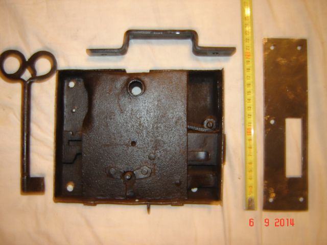 Antikna brava za klet,velika 20 x 16 cm,s originalnim ključem (19 cm)