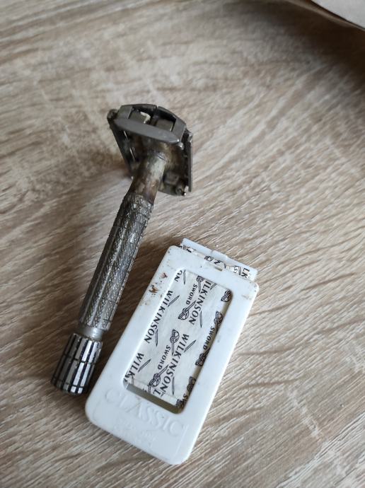 Na prodaju brijac( aluminijski),na internetu sam vidio da je jedan od boljih brijaca takvog tipa.Bio od mog djeda koji ga ne koristi,a uz brijac kupac dobije i kutiju Wilkinson žileta 50 tak komada, naravno novih,zapakiranih.Šaljem Poštom ili Tiskom ili u dogovoru sa kupcem , poruke na Viber ili njuskalo ili nazovite!!Otvara se na vrhu vodoravno ,odvrtanjem sarafa na dnu ili zašarafljivanjem se zatvara.Vidi slike!!
