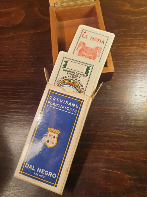 DEL NEGRO TREVISIO U POKLON DRVENOJ KUTIJI. NIKADA IGRANO. IDEALAN POKLON ZALJUBLJENICIMA KARTANJA.