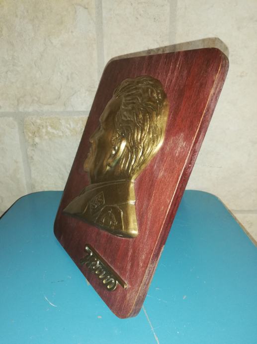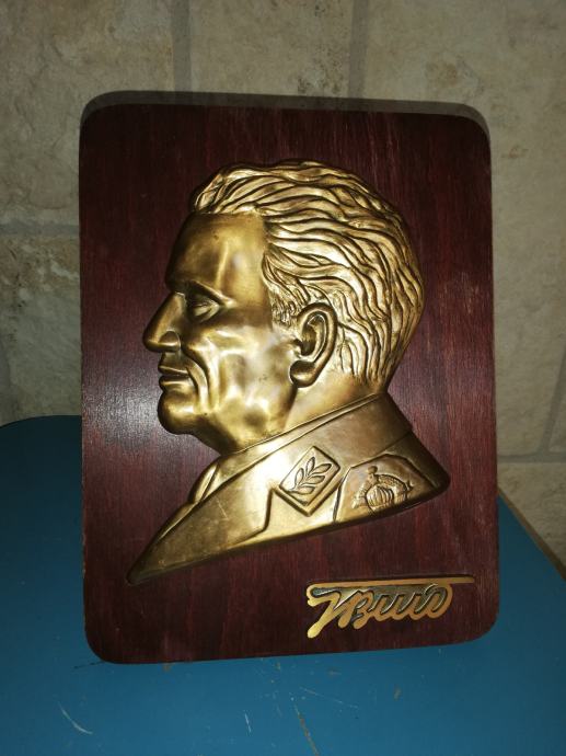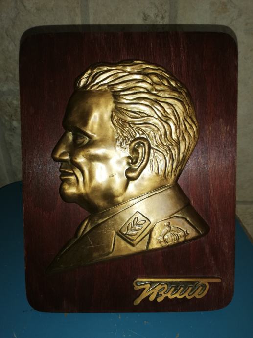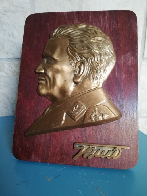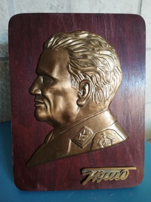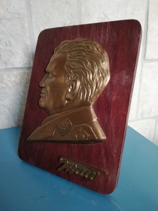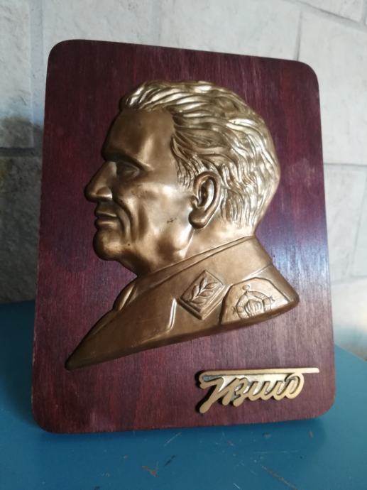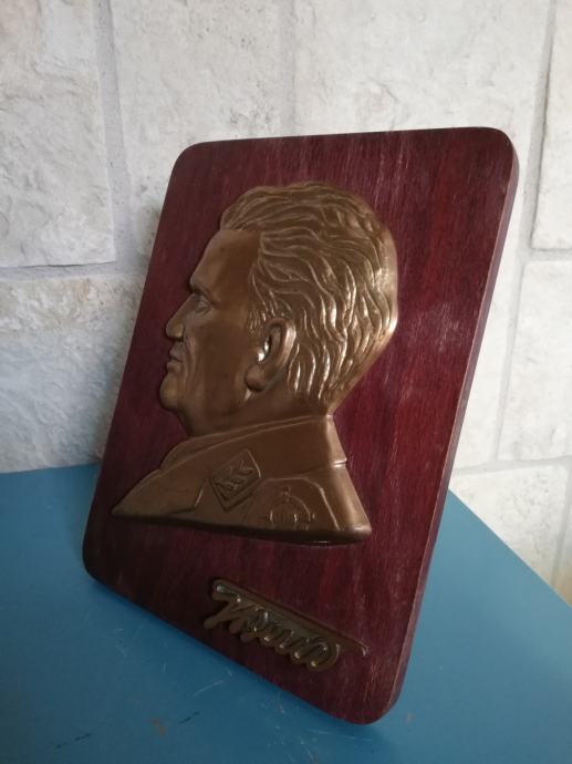 Plaketa, J. B. Tito, materijal bronca, autor B. STANOJČIĆ, na drvenoj ploči i sa staklom, dimenzije ploče: 25,4 x 19, 4 cm, dimenzije pakete 19,5 x 15,5 cm.
