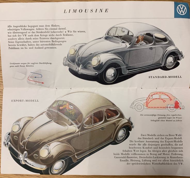 Brošura Volkswagen 1200 iz 1955. g. na njemačkom jeziku, 6 stranica.