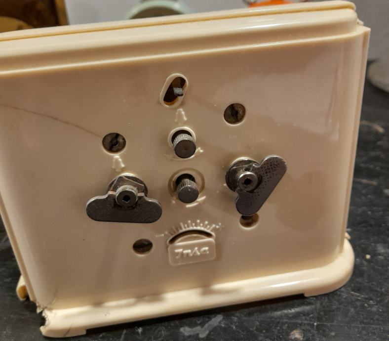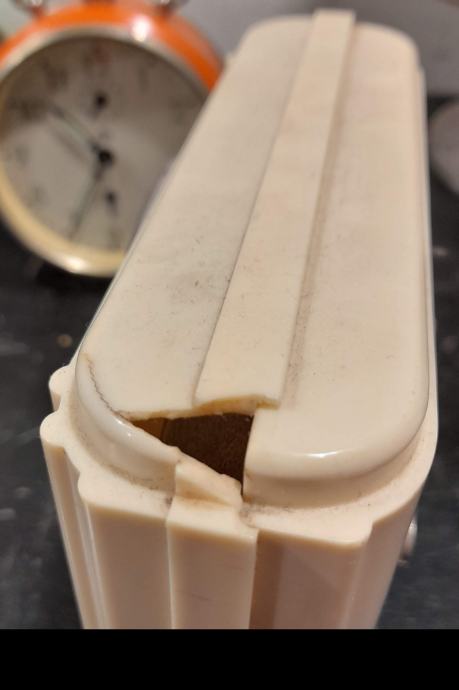 Starinska vekerica,ura boja slonova kost.Sat radi no ne zvoni i ima ostecenje vidljivo na slici.Made in yugoslavia.Ne saljem