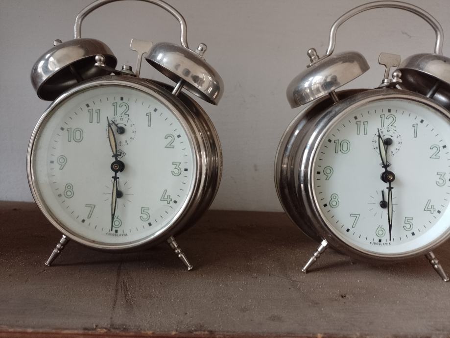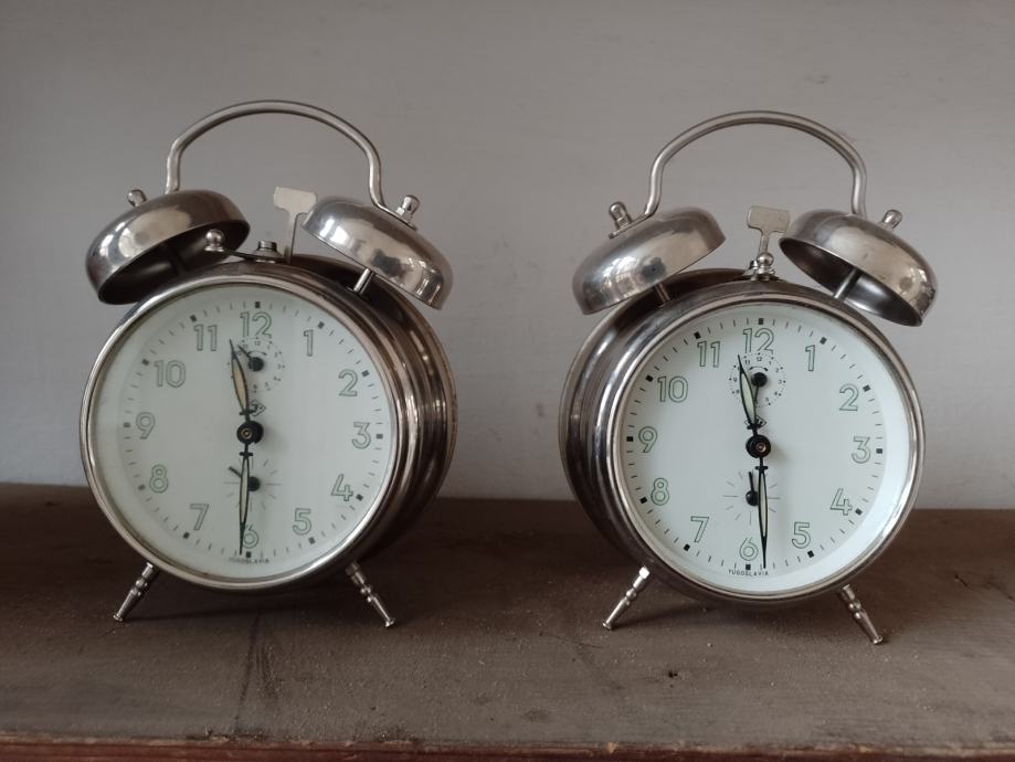 Budilice INSA , satovi starinski , proizvodnja u bivšoj državi . Satovi su kompletni , neoštećeni , jedan je malo korišten i potreban je manji servis i podmazivanje za oba zbog dugog stajanje .Cijena za 1 komad .