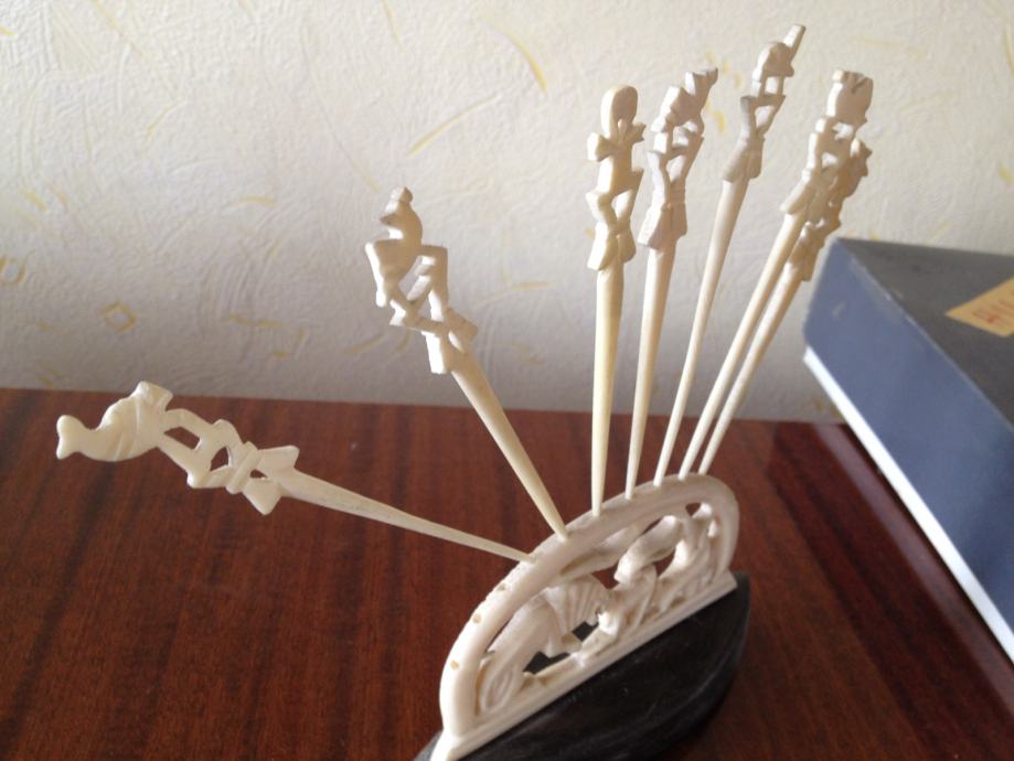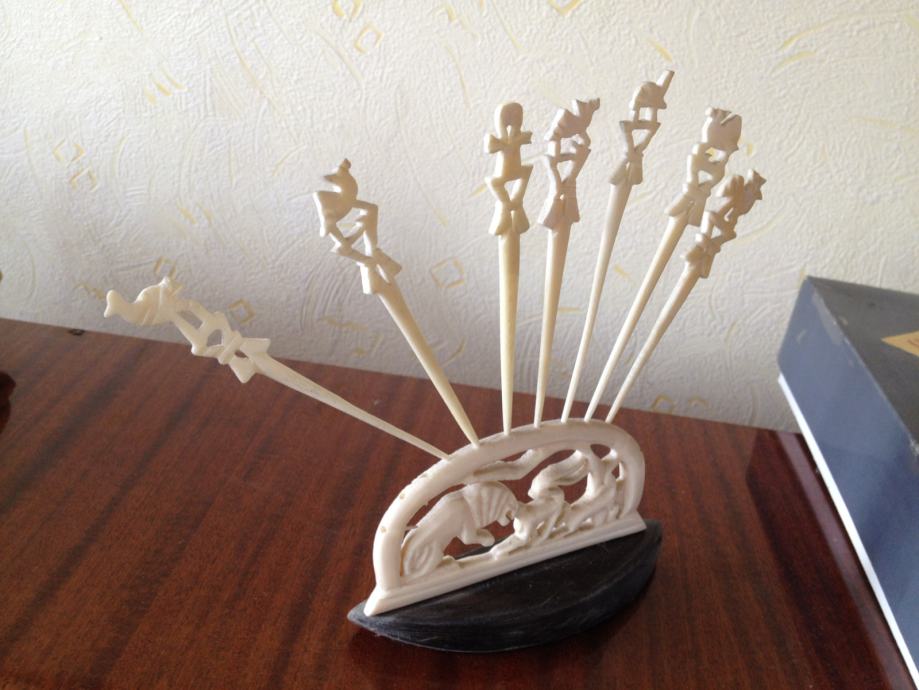 Iz Sudana - čačkalice i ukras od devine kosti na podlozi ebanovine.