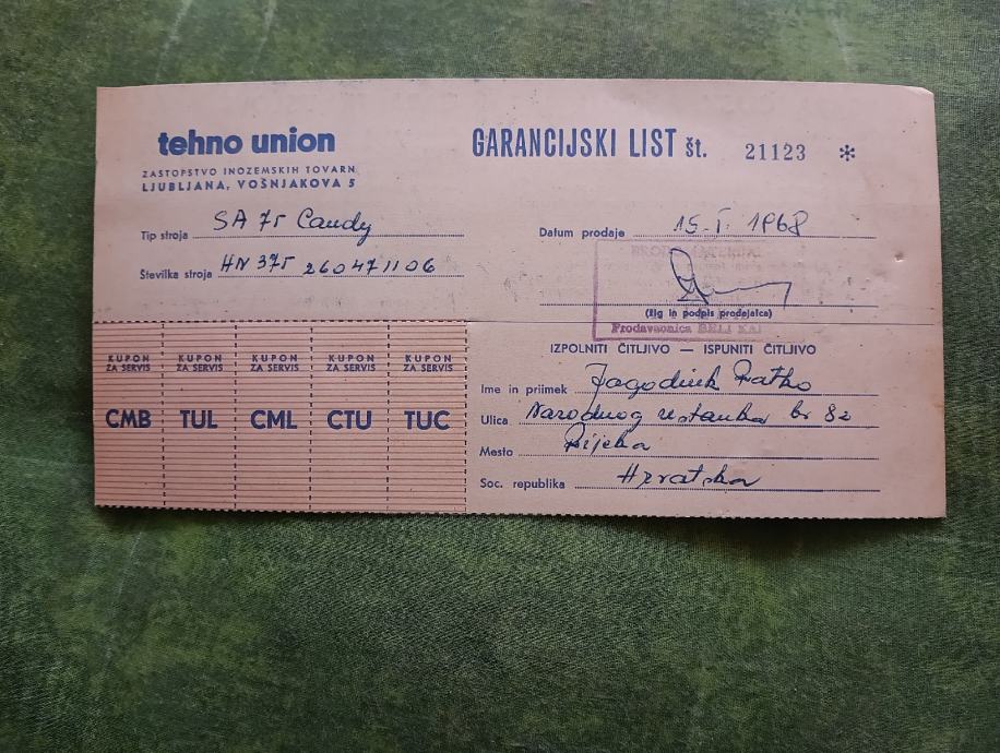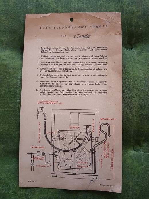 Prodajem uputstvo za upotrebu ( knjižica) za mašinu za pranje rublja marke Candy super automatic 75+garancijski list iz 1968g. Cijena za lot. Plačanje na račun ili gotovina.
