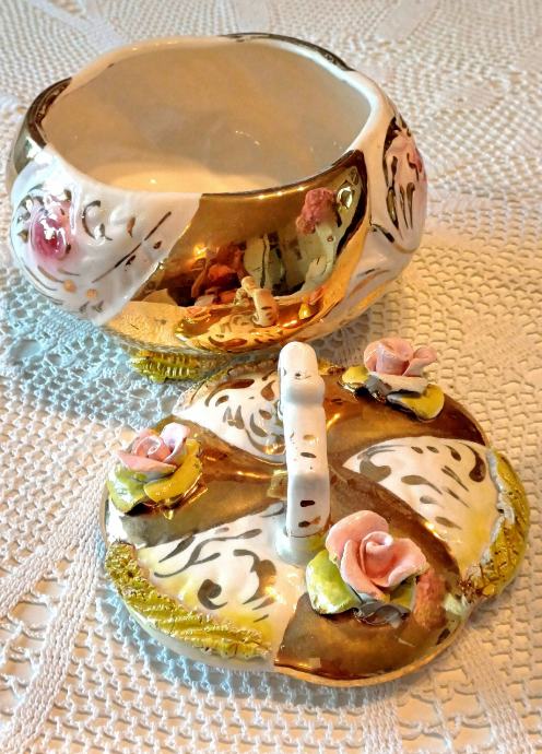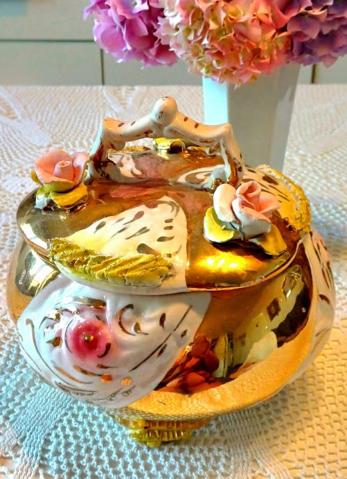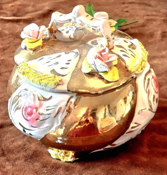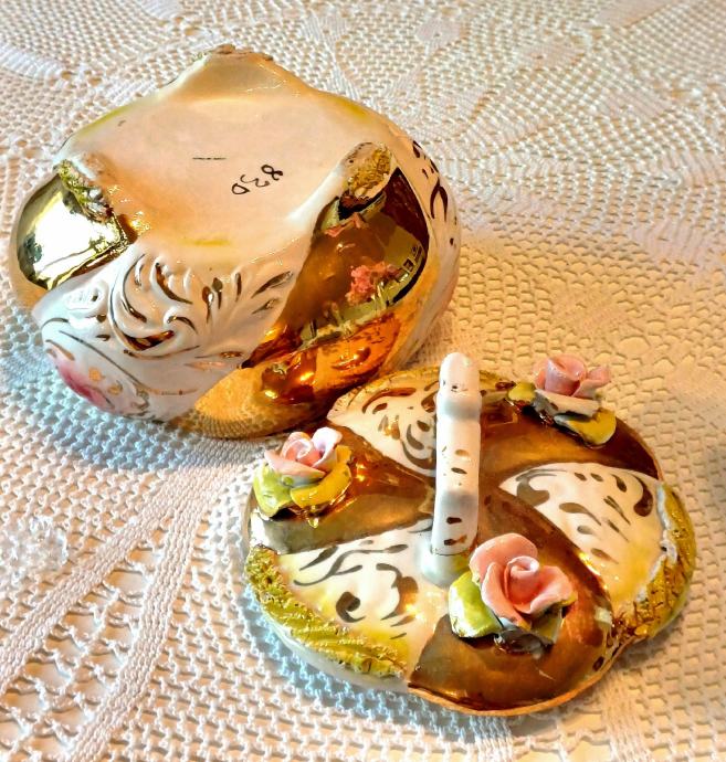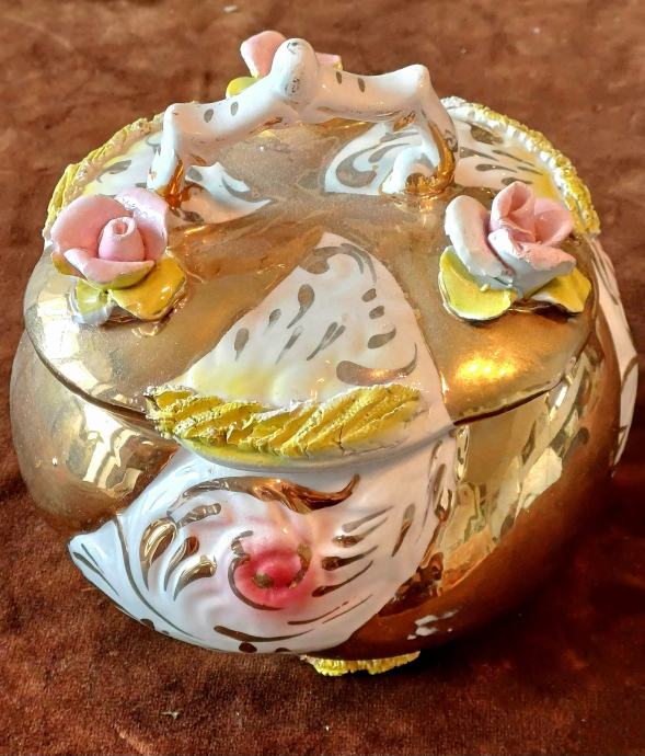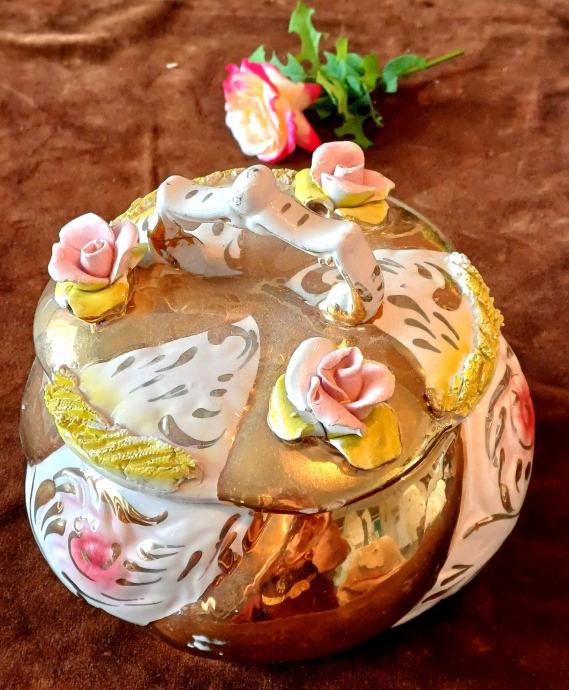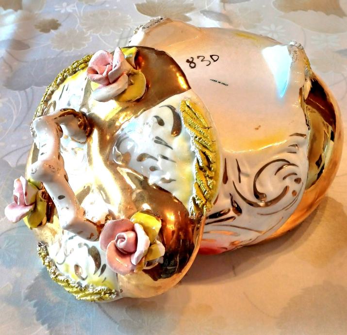 Predivna ručno rađena zdjela Capodimonte Italy. Promjer otvora 16 cm, promjer u najširem dijelu cca 22 cm, visina 20 cm. Na zadnjoj slici je vidljivo oštećenje jednog cvjeta, zbog čega je bitno snižena cijena.