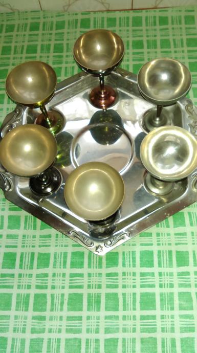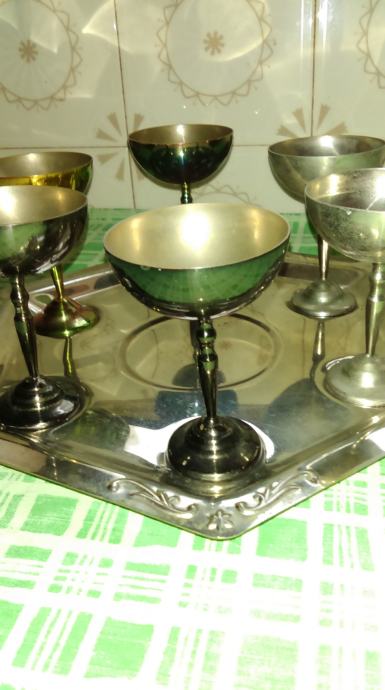 stare čašice (šest komada) od alpake na originalnoj tacni od rosfraja, komplet 350kn
