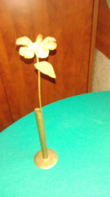 stara mesingana vazica sa cvijetom izrađenim od žice i lima
