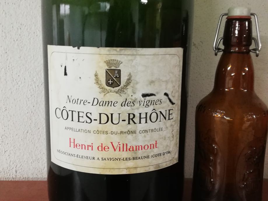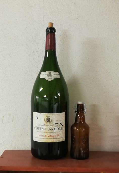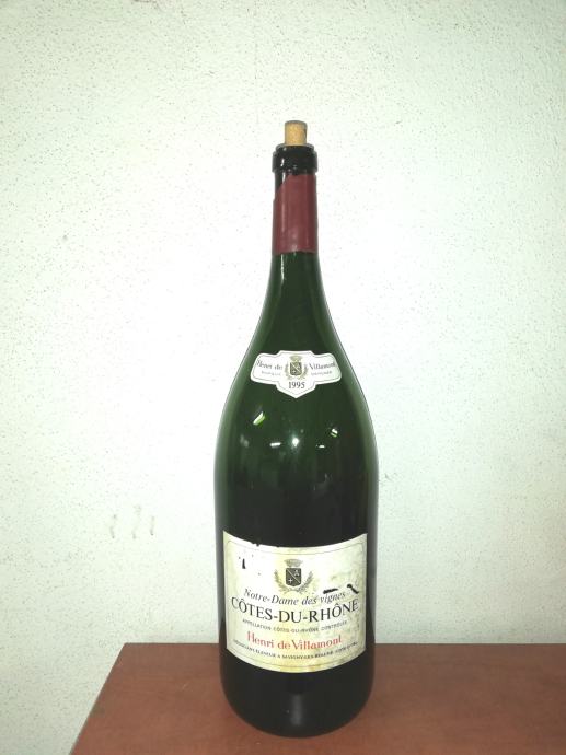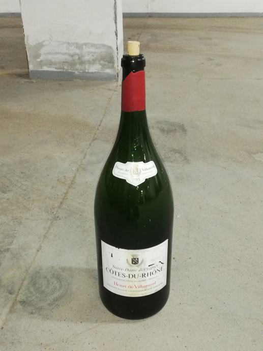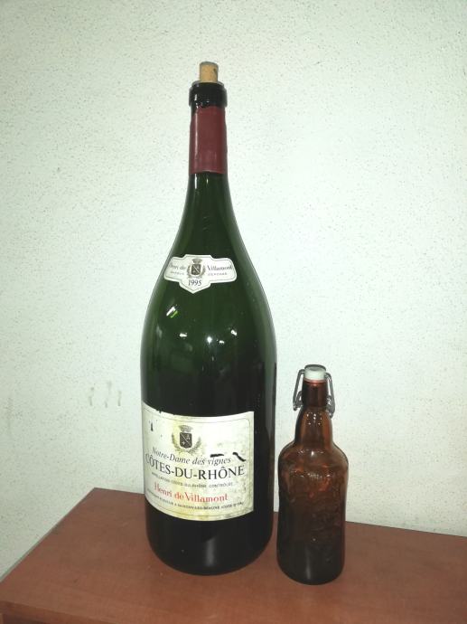 Dekorativna Stara staklena boca od vina, izrađena za jubilej, visina 58 cm, promjer baze 16,5 cm.
