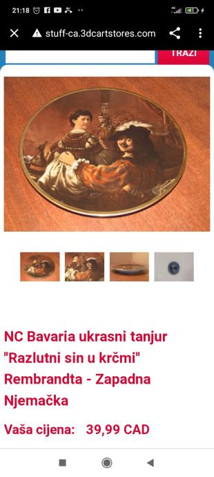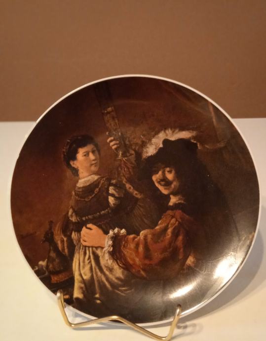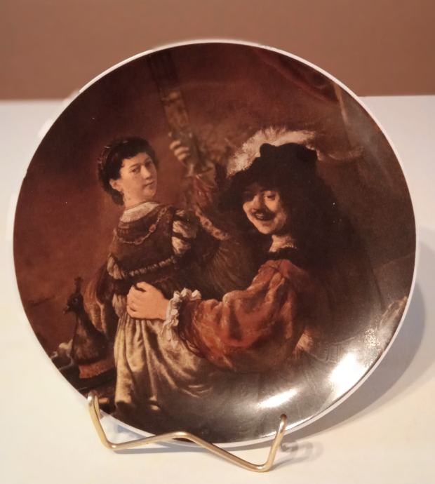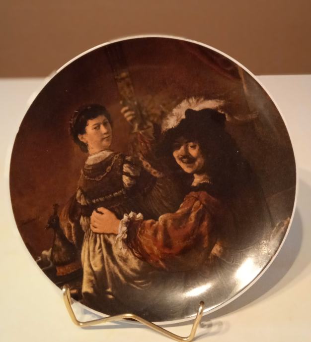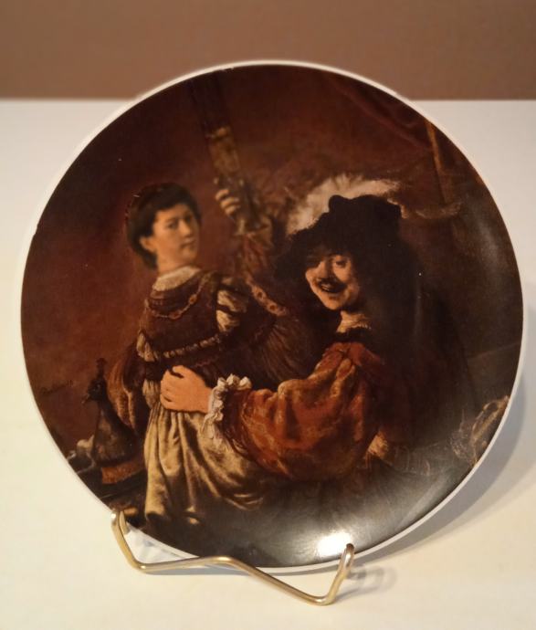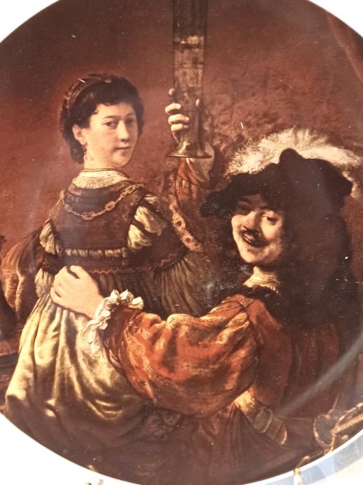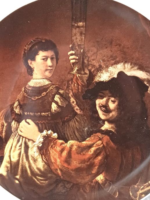 Bareuther porculan. Reprodukcija Rembrandt -ove slike Rasipni sin u krčmi. Stanje besprijekorno. Promjer 26 cm.