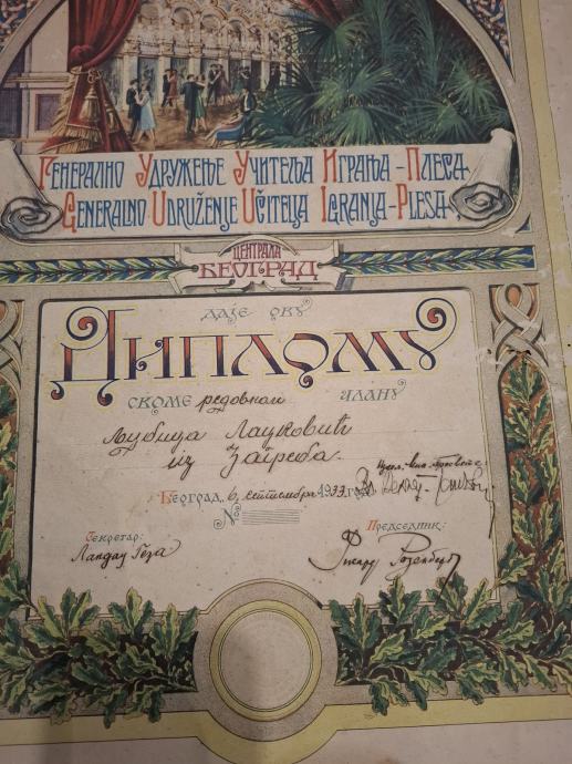 Diploma većih dimenzija(41×56 cm) iz vremena kraljevine.Stanje vidljivo.