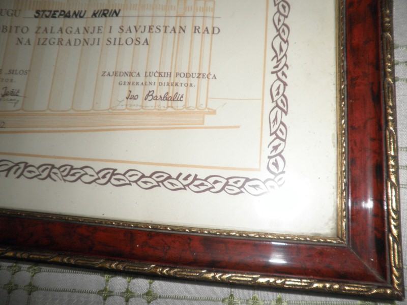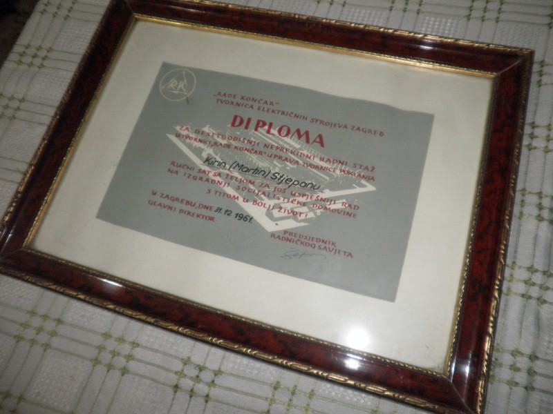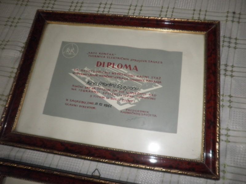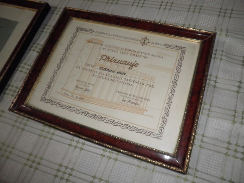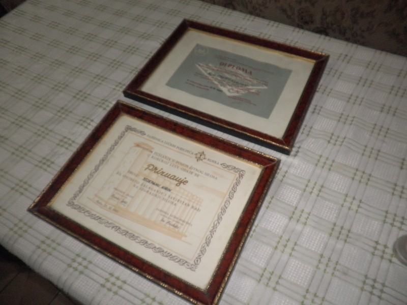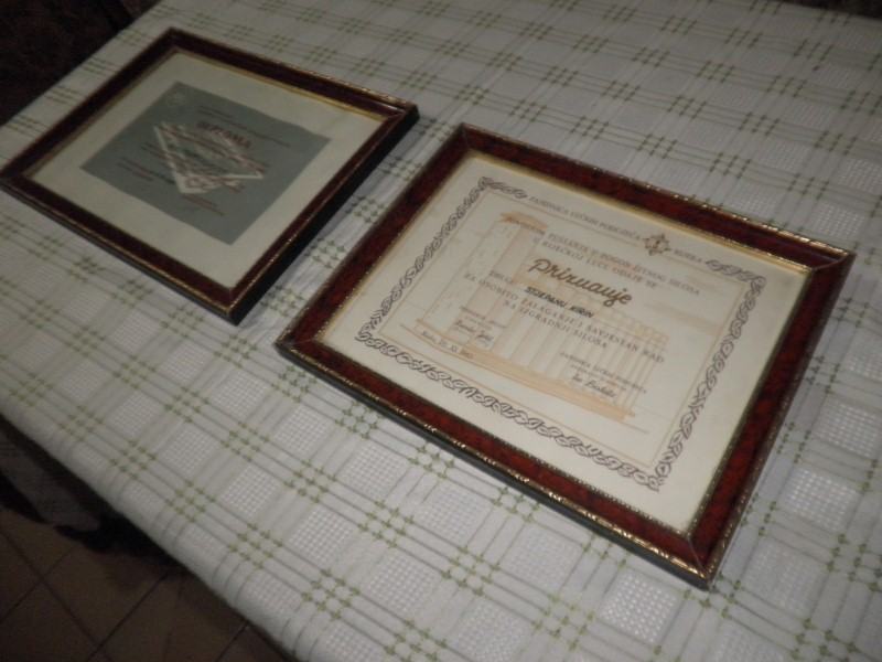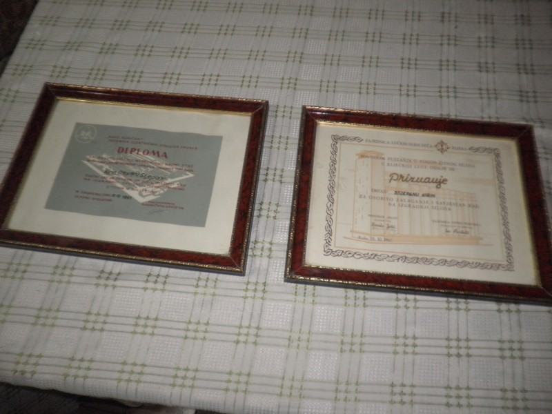 Stara uokvirena i ustakljena diploma i priznanje u odličnim i sačuvanim starinskim okvirima obje za samo 100 kn !!!