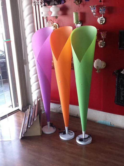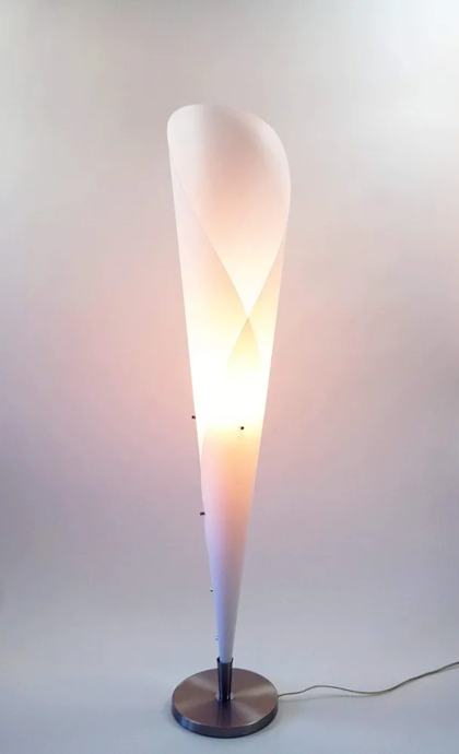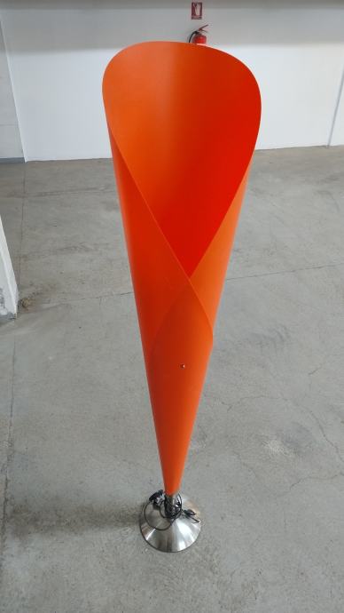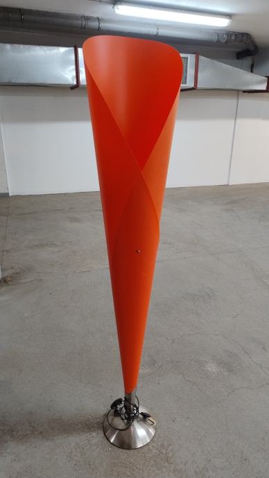 Dizajnerska podna lampa elegantnih linija, koja podsjeća na tulipan u punom cvatu. Narančasti abažur od prozirnog fleksibilnih polipropilena (plastike) poprima toplu nijansu kada je izvor svjetla uključen, što podnu lampu visoku 155 centimetara čini posebnom u svakom prostoru. Baza od brušenog nehrđajućeg čelika upotpunjuje kompletan ugođaj .