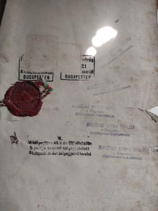 Dokument sa službenim PEČATOM Ugarske,PEŠTA vise dokumenata u jednoj knjizi zapecacenoj PEČATOM Ugarske ( BUDAPEST),s vezano za razne invalide toga vremena,nasao na tavanu kuce koju sam kupio,Za sve informacije nazovite na broj 097-660-1365 ili pošaljite upit na Viber ili Njuskalo, a Šaljem Poštom ili Tiskom ili u dogovoru sa kupcem, stanje papira osrednje,ali jasno se vide bitne stvari kao godine i stambilji.Vidi Slike!! Kolekcionarima kao stvoreno.Muzejski primjerak!!