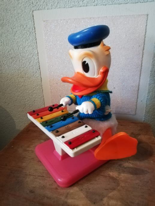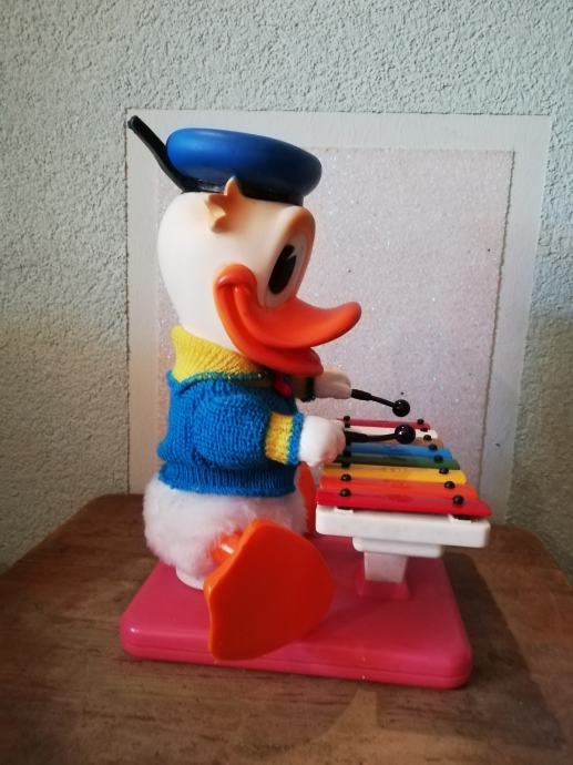 Donald Duck, by Walt Disney, Mechanika Ibanese, Španjolska. Mehanička igračka iz 1970-tih godina, Donald Duck svira cimbalo.