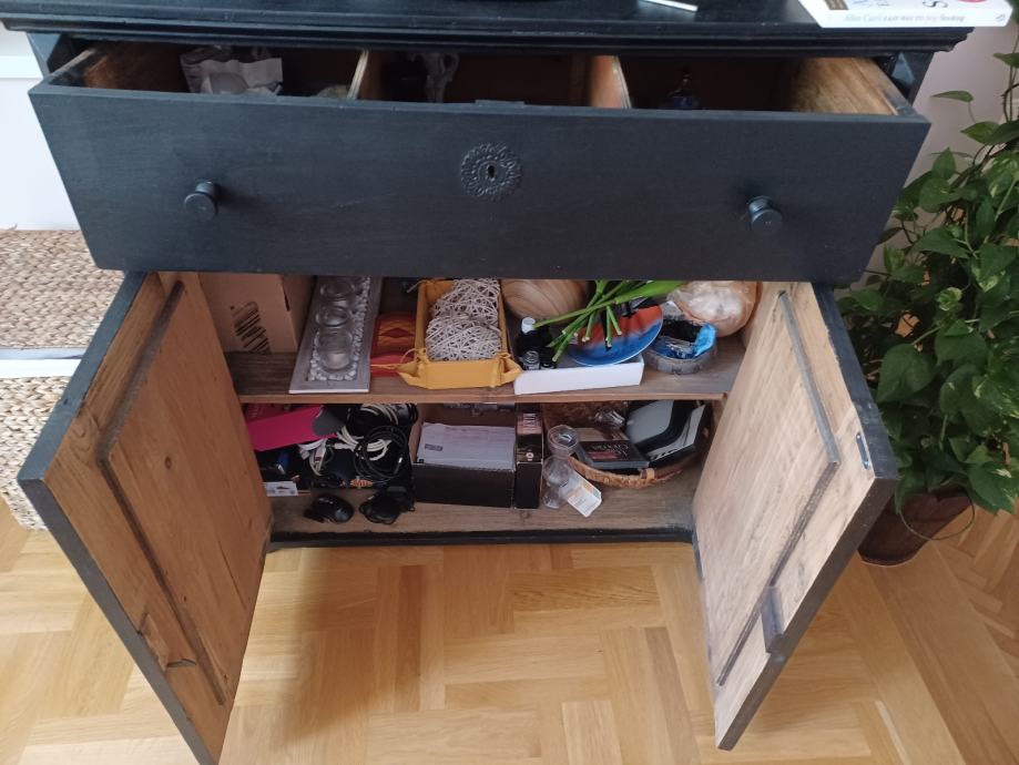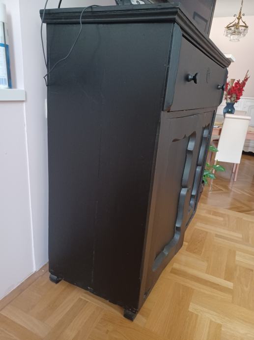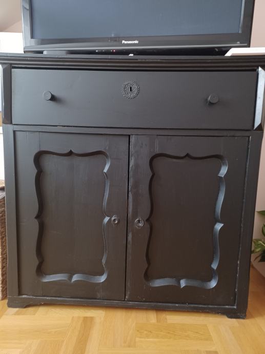 Drvena komoda početak 20. stoljeća, crna. Dobro sačuvana i zaštićena. Dimenzije 109 x 109 x 48 cm.