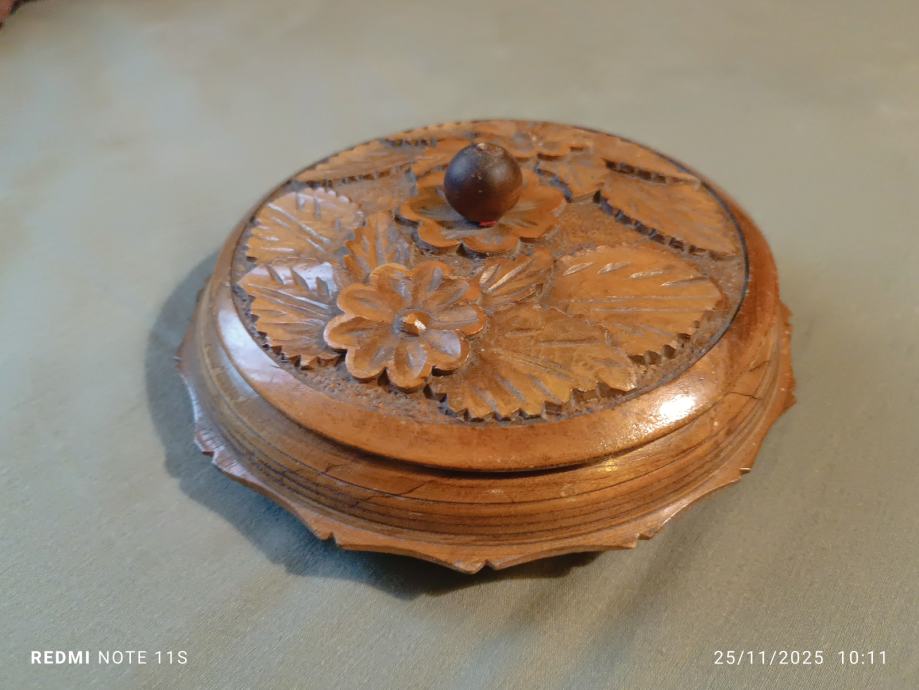 stara okrugla drvena kutija promjera 20cm,