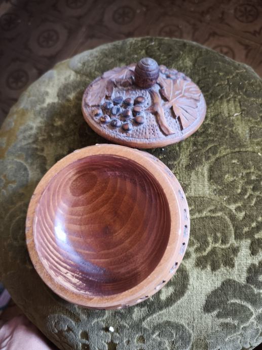 Drvena retro zdjelica za bombone ili slično. S poklopcem.