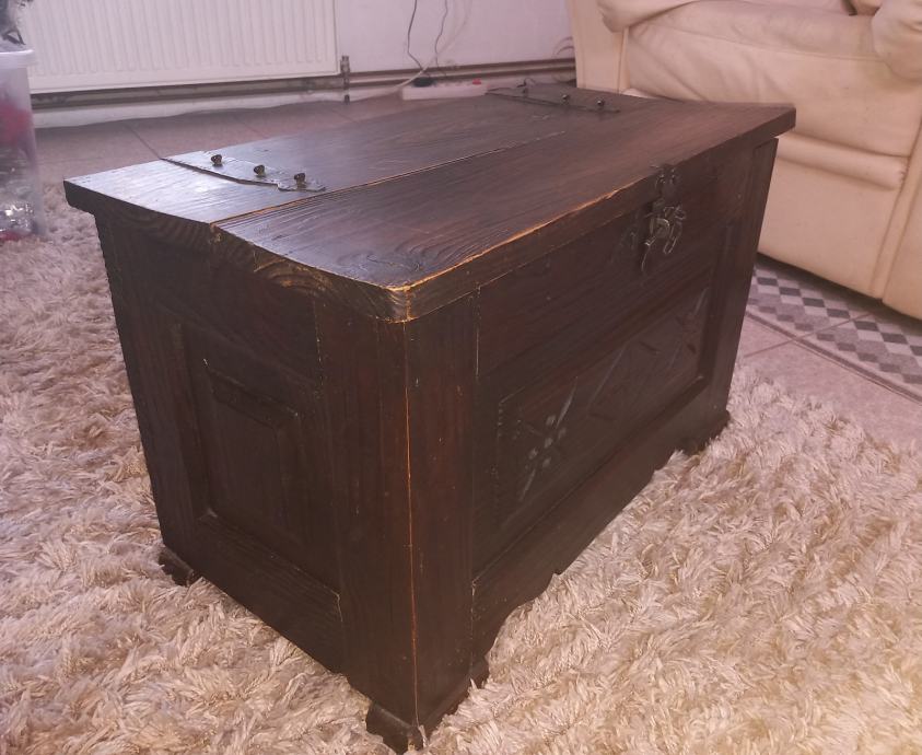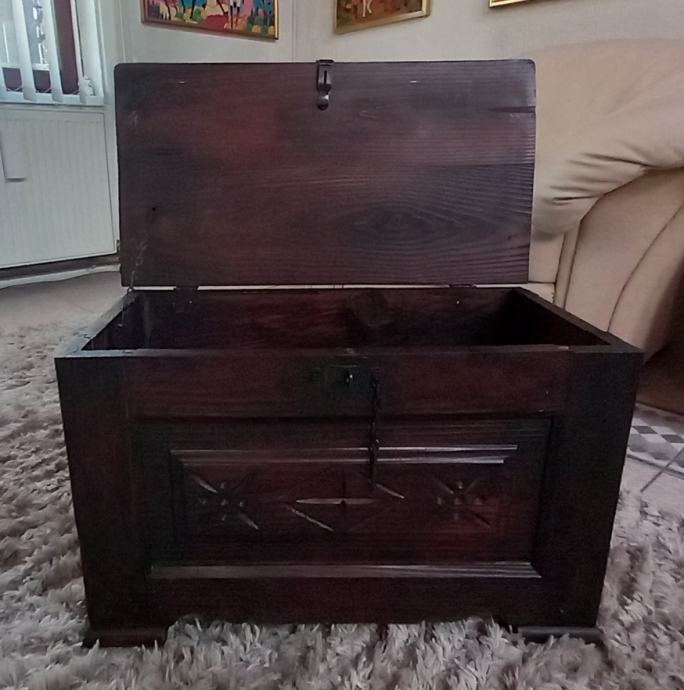 Prodajem drvenu, unikatnu škrinju za pohranu stvari, puno drvo, stara više od 40 god. Dimenzije 61x32x39cm.