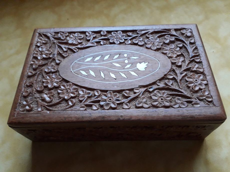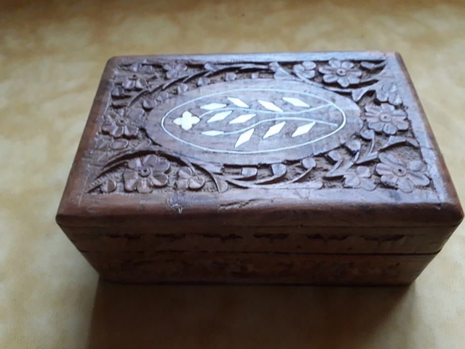 prekrasne izrezbarene drvene kutije za nakit ukrašene intarzijom, unutrašnjost obložena filcom, više komada. cijena po komadu180kn