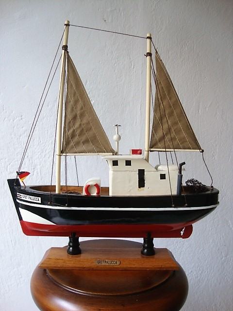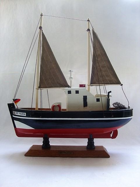 Veliki dekorativan drveni ribarski brod stanje perfektno dimenzije visina 39 cm x 34 cm x 8,5 cm