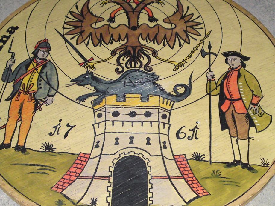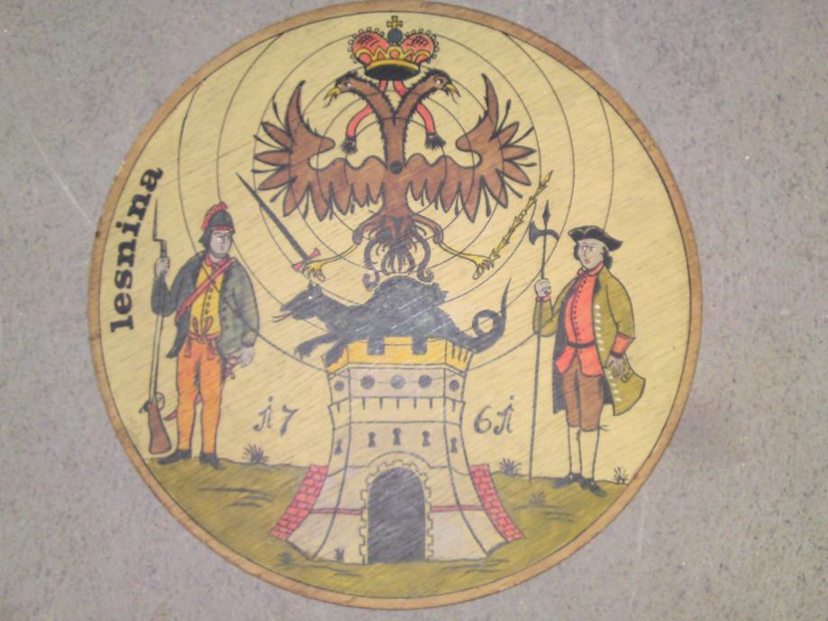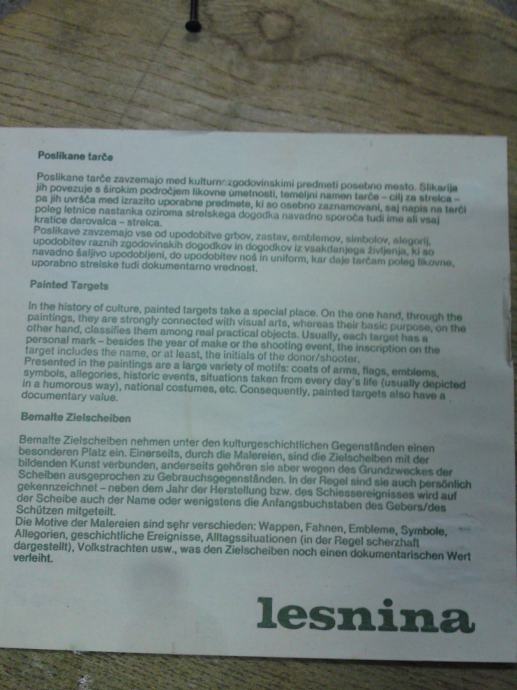 Stari drveni umjetnički dekorirani pladanj, promjera: 25,0 cm, koje je izrađivala lesnina, sredinom 70-tih godina sa etiketom i opisom predmeta tzv. narodnog umjetničkog obrta. visina: 1,0 cm.