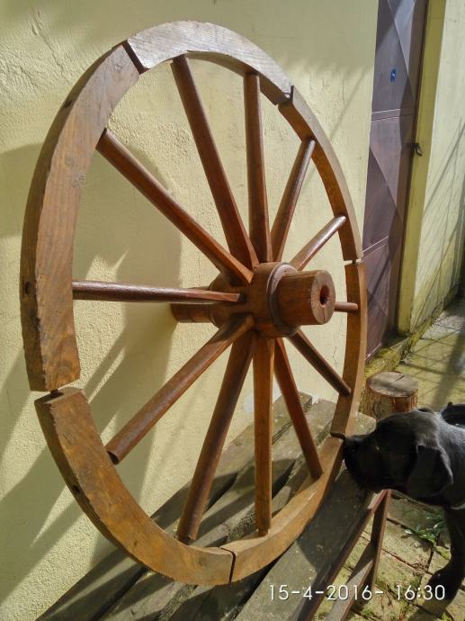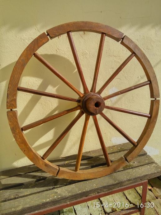 kotač je star ali nikada nije bio na kočiji,promjera 102 cm,izrađen je od čistog tvrdog drveta,pogodan za razne ukrase dvorišta i unutrašnjosti.cijena dogovor ili mijenjam.