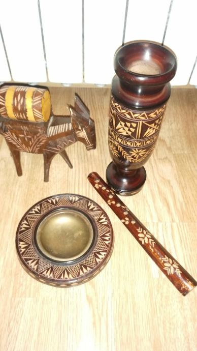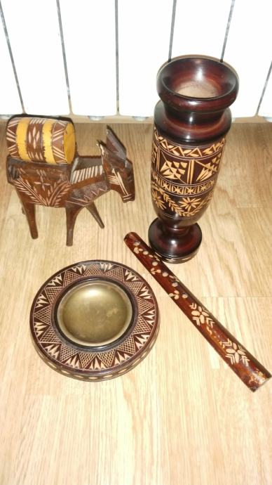 Drveni magarac, vaza 23 cm, frula 24 cm, pepeljara promjera 15 cm.