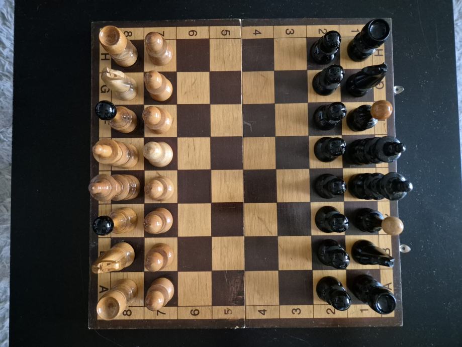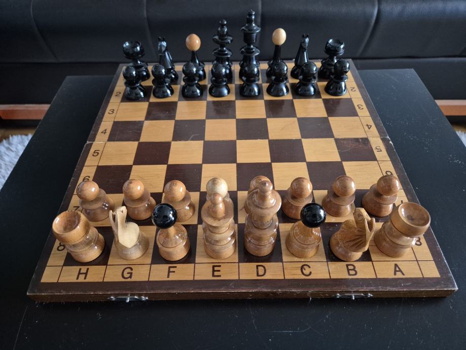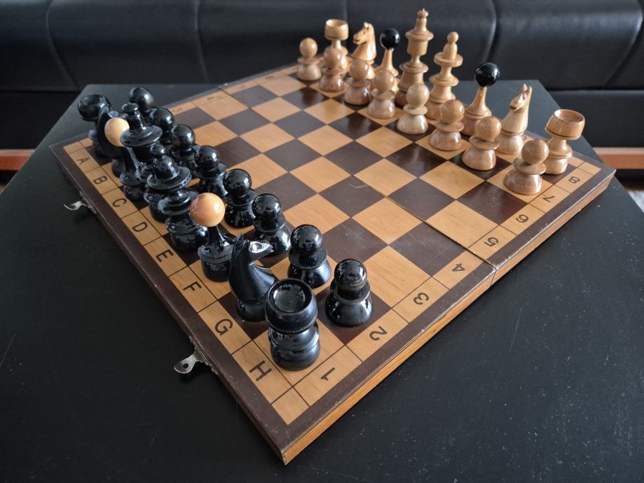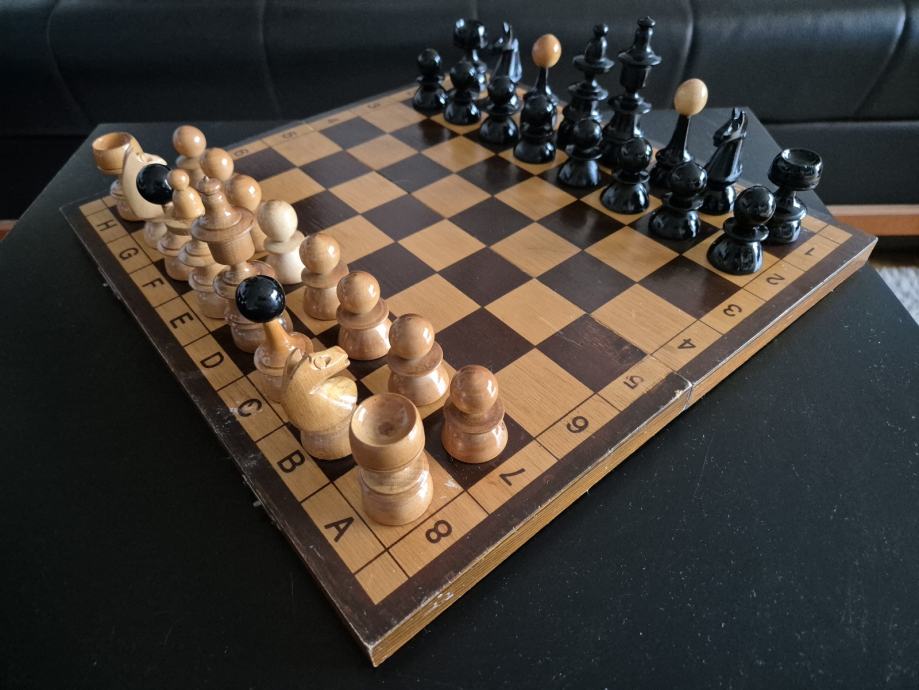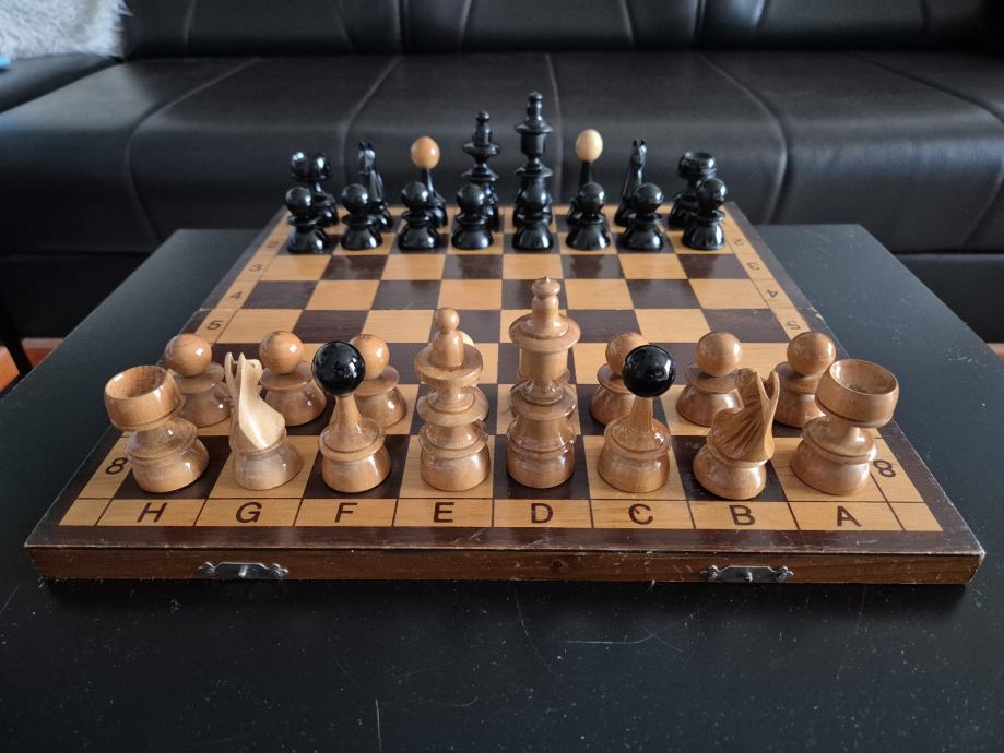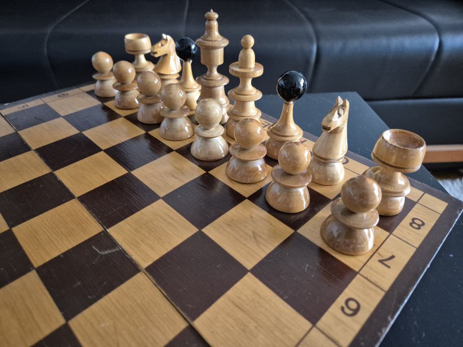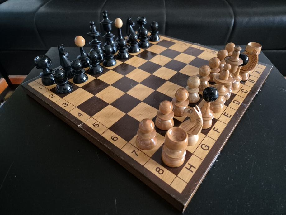 Prekrasan drveni šah dimenzija 35x35cm, drvene figure.