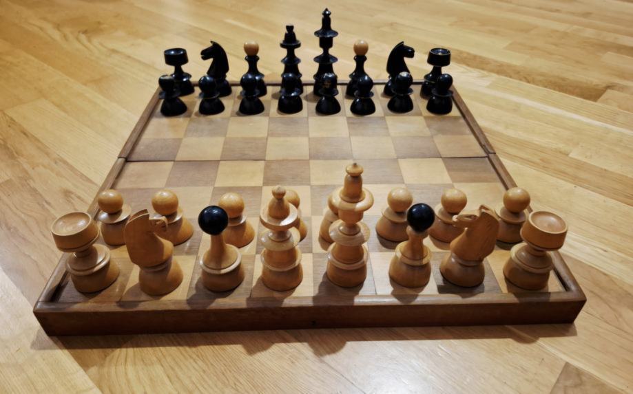 VINTAGE VEČI DRVENI ŠAH SA DRVENIM FIGURAMA