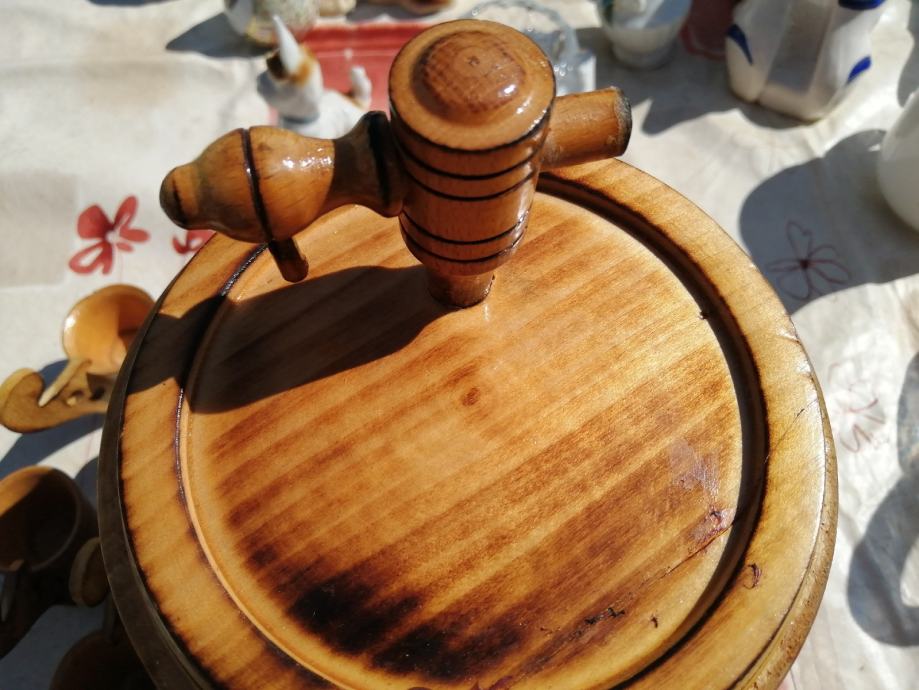 Prodajem drveno bure za rakiju, 2 litre, sa pripadajućim štamplicama.