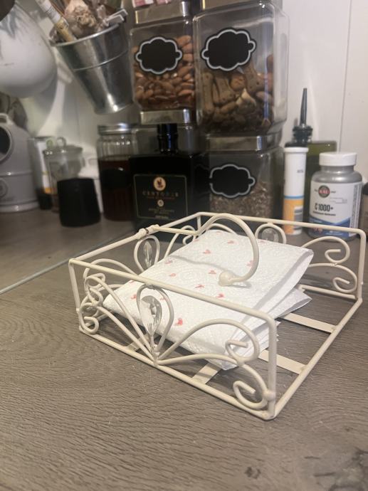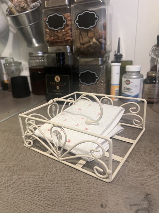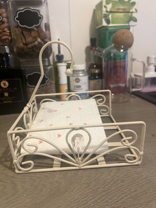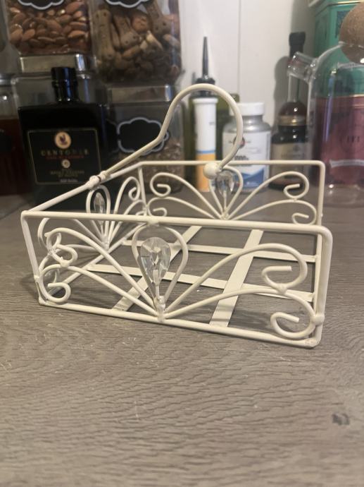 Držač za salvete od kovanog željeza, bijeli, nikad korišten