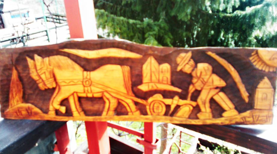 "orač" duborez na drvenoj dasci dimenzije 82x25cm