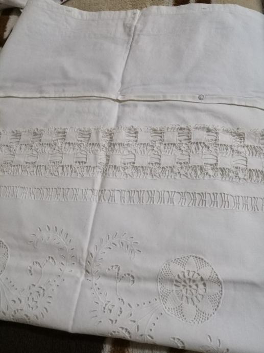 Prodajem dva starinska prekrivača i šest jastučnica ručno rađenog platna. Šlingano i u odličnom stanju. Nikad korišteno.