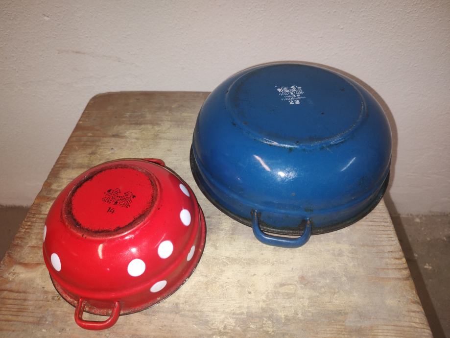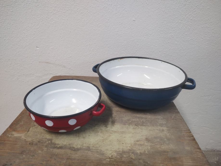 Vintage emajlirane zdjele (često nazivane i "vangle" ili "seljačke zdjele"), koje su prepoznatljive po svom retro dizajnu i izdržljivosti, Emo, Celje.