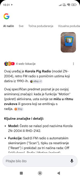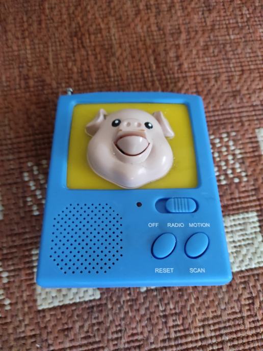 Ovaj stari radio iz 90 tih godina ,nekada popularan radi na tri AA baterije .Za sve informacije nazovite na broj 097-6601365 ili pošaljite upit na Viber ili Njuskalo, a Šaljem Poštom ili Tiskom ili u dogovoru sa kupcem, stanje dobro.Radio radi tako da Svinjica otvara usta,u slikama opširniji opis.Vidi slike!!