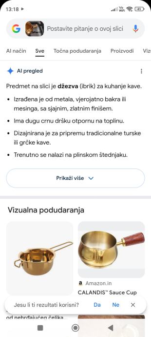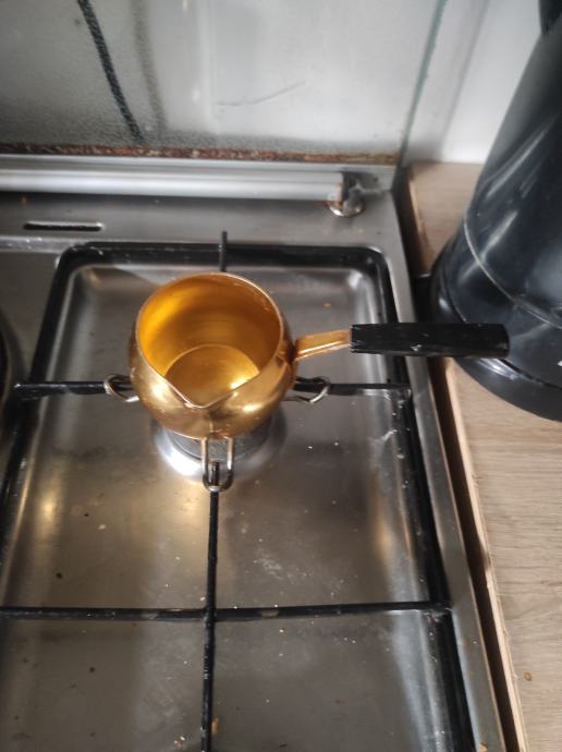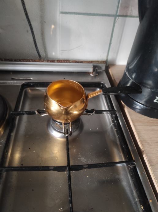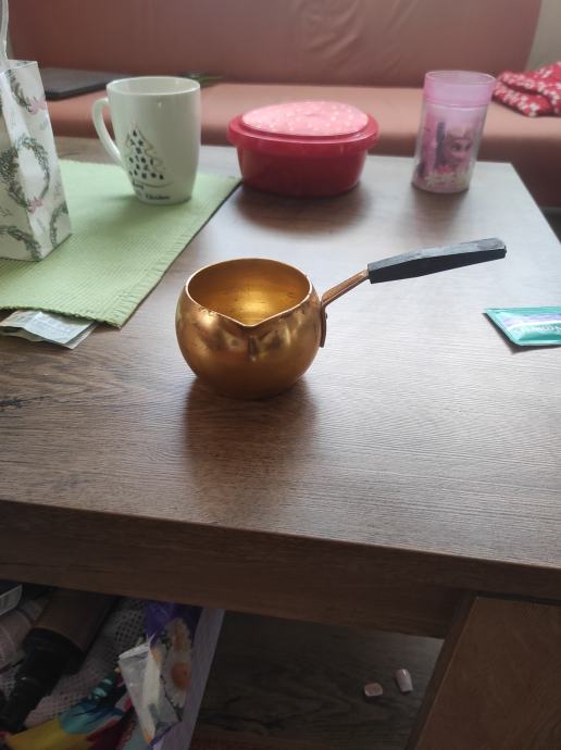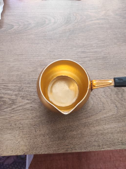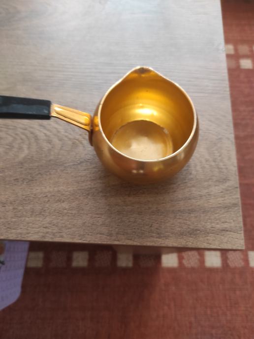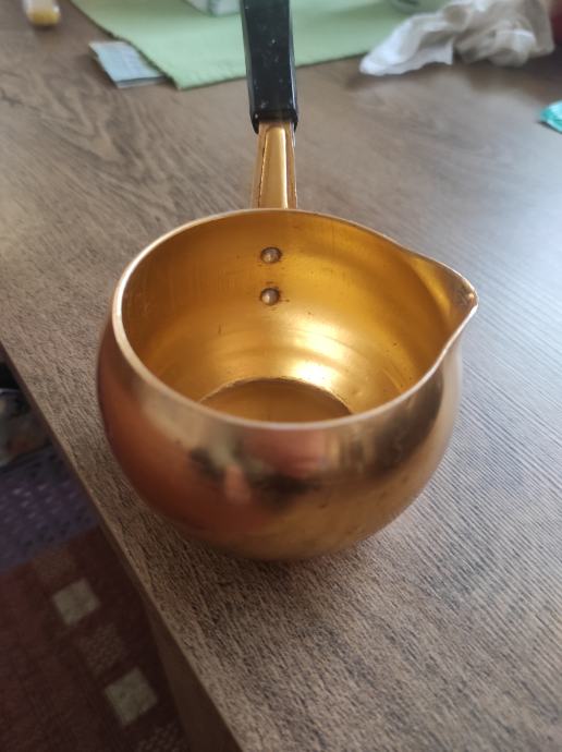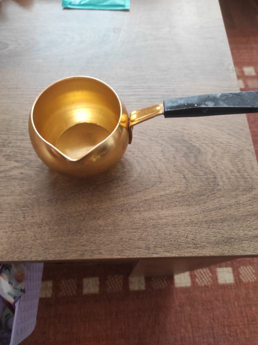Stara dzezva ili posuda za takozvanu Tursku kavu,stanje odlično iako je dosta stara,neznam tocno koliko,ali znam da je iz Bosne,poklon mojoj baki,a ona ju je koristila mozda par puta ili ju nije uopće koristila.?Za sve informacije nazovite na broj 097-6601365 ili pošaljite upit na Viber ili Njuskalo, a Šaljem Poštom ili Tiskom ili u dogovoru sa kupcem.Dugacka je sa Ručkom 18 cm,promjera 8 cm i stane oko 3 deca tekućine ,kave,mlijeka ili sl. Moze se koristiti,a može biti Ljep ukras za kucu, vikendicu, caffe bar, terasu,etno imanje ili gdje vec kome pase.VIDI SLIKE!!