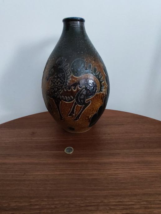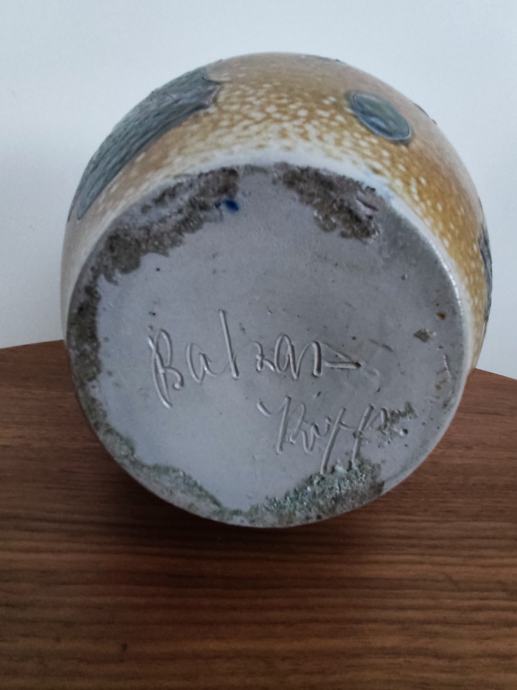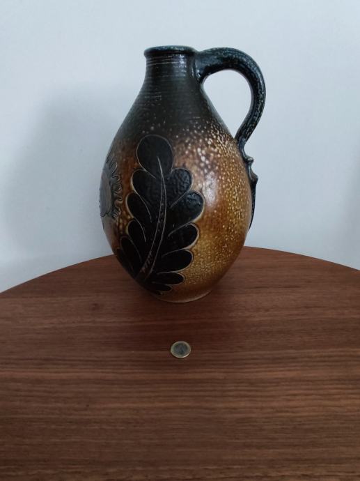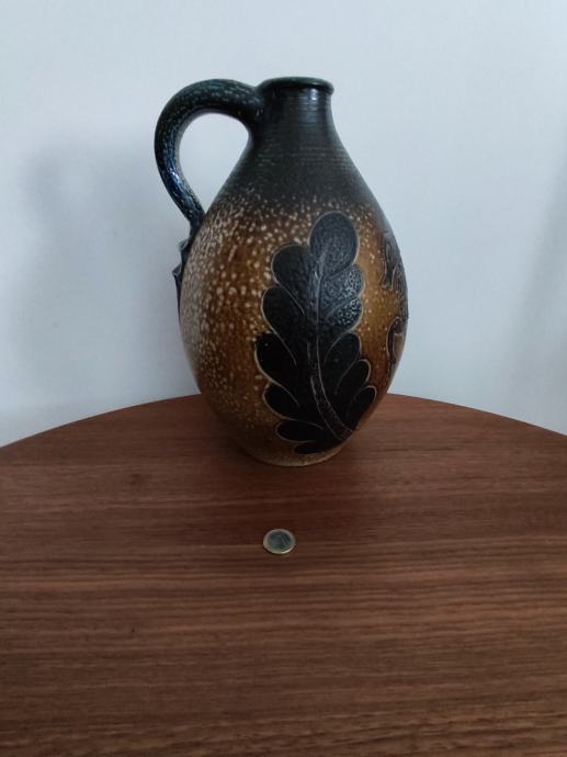 Veliki keramički vrč Elfriede Balzar-Kopp. Visina oko 33 cm, širina dna 11 cm.