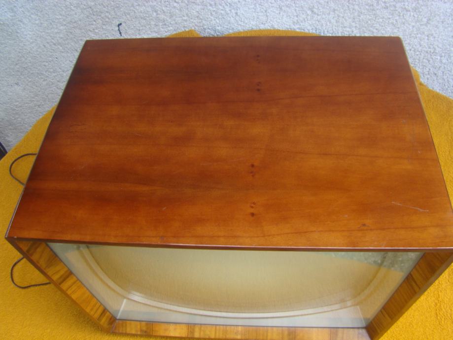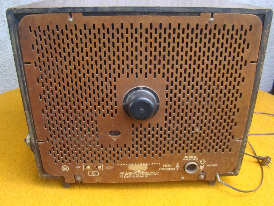 -Doro očuvan, ima pokoju ogrebotinu koja se ne vidi na slikama ali ne kvare estetski dojam. Utikač ne ide u današnje utićnice, ispravnost nepoznata. Iznutra ima dosta prašine. Na šasiji piše Tv 865 a na originalnom zadnjem poklopcu Tv 870 ali radi se o modelu 865 . 870 je veći model sa prednjim zvućnikom.