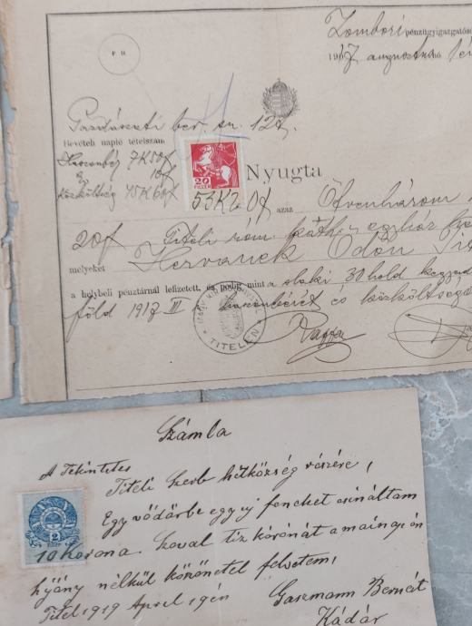 Numizmatika i filatelija: Dokumenti sadrže brojne originalne biljege (fiskalne marke) Austro-Ugarske, Kraljevine Mađarske i ranog perioda Kraljevine SHS.