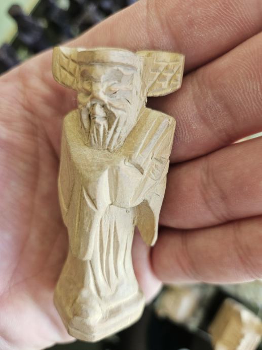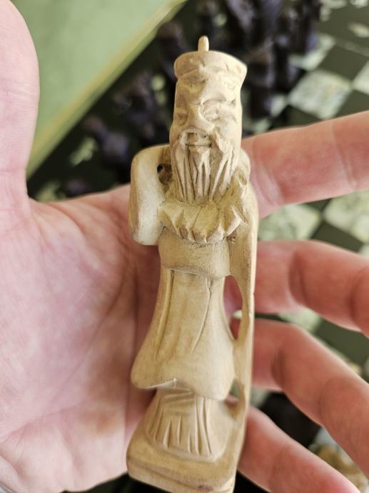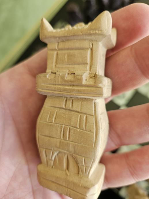 Svaka figura je ručno rezbarena u drvu, s detaljima inspiriranim kineskim ratnicima, mudracima i pagodama.