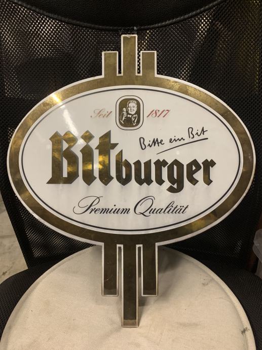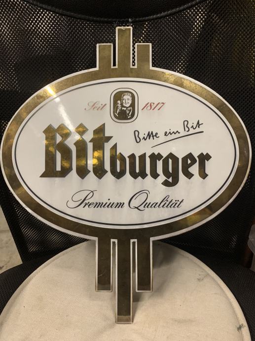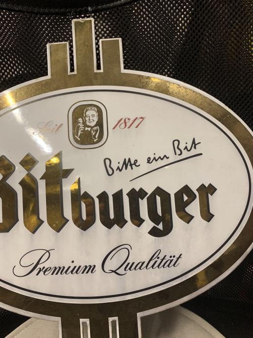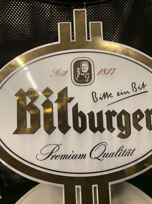 Prodajem uščuvanu emajliranu reklamu za pivo Bitburger.Dimenzije 45x40cm